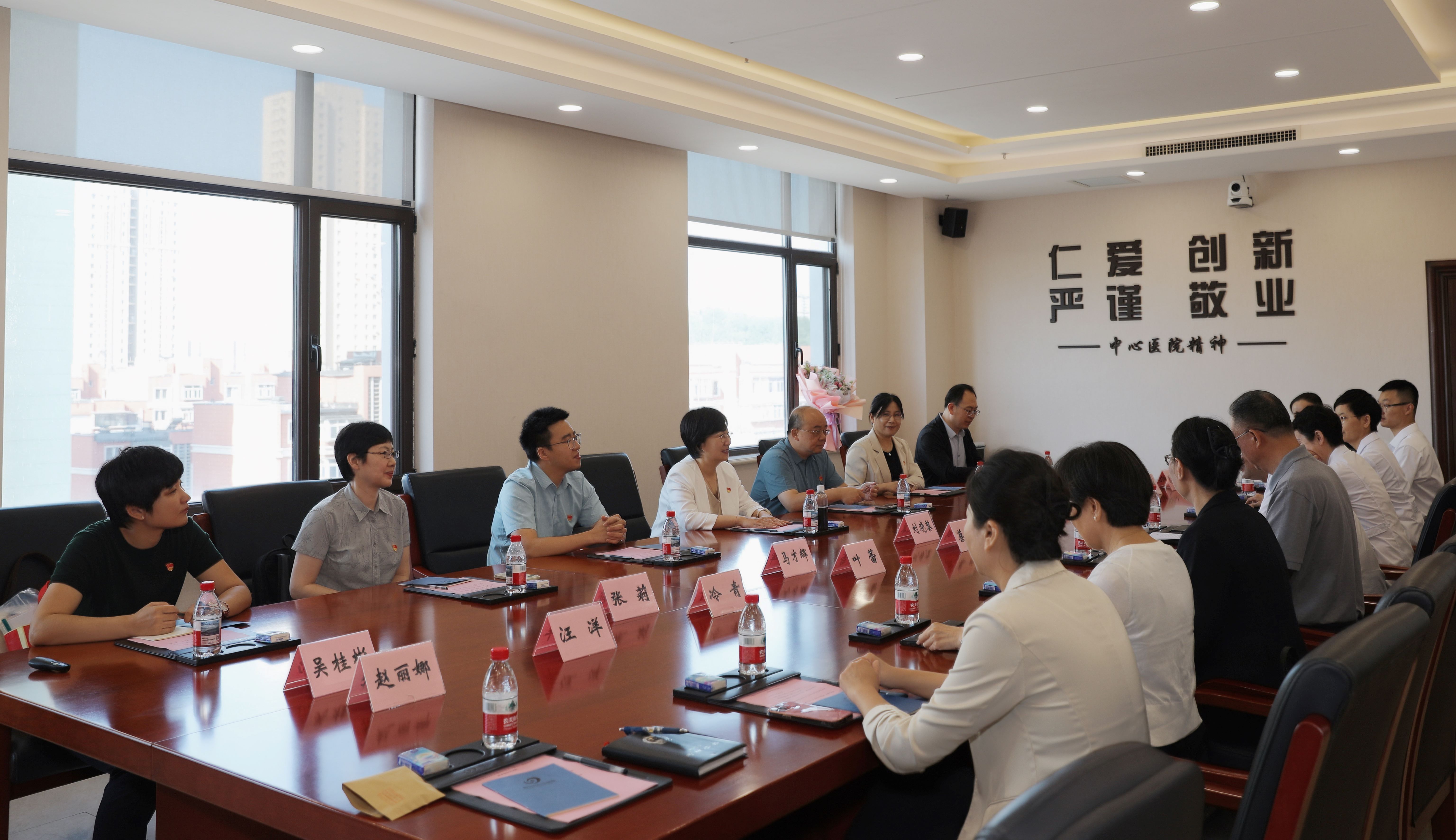 为推进党建与业务深度融合,加强跨区域医疗机构之间的党建联动,近日,党委委员、副所院长刘晓黎,党委委员、副所院长、红细胞疾病诊疗中心党支部书记施均带队前往辽宁鞍山慰问所院中组部专业人才服务东北项目第一批支援干部、鞍山市中心医院挂职副院长叶蕾同志,并开展主题党日活动。鞍山市中心医院党委书记田旭,党委副书记、院长蔡鹏及相关职能科室陪同慰问并参加座谈会,鞍山市中心医院党委委员、工会主席杜丽主持座谈会。