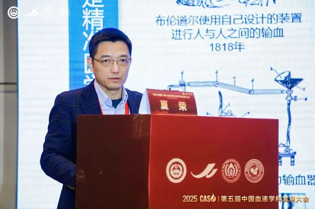 夏荣教授以“输血及血液生物治疗新进展”为主题进行报告,系统介绍了国内外在输血技术与实践方面的最新进展。他指出,临床输血的发展是从蒙昧逐渐迈向科学的过程,其中精准输血作为精准医学的开端,致力于实现血液输注的科学性、安全性及有效性。夏荣教授通过实际工作中的多个治疗案例,有力证明了输血实践正由传统的替代性输血向更为先进的治疗性输血转变。他肯定了血液衍生物与工程红细胞在治疗及替代治疗中的重要价值,并阐述了包括嵌合抗原受体T细胞疗法(CAR-T)、T细胞受体修饰T细胞疗法(TCR-T)、嵌合抗原受体自然杀伤细胞疗法(CAR-NK)在内的基因编辑技术,以及非基因修饰细胞疗法等前沿治疗手段的最新进展。同时,他也指出了输血医学面临的挑战,提示了临床实践中需要注意的新问题。