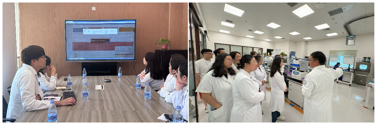 输血医学中心党支部党员傅炟同志围绕输血管理系统,系统讲解了输血费用管理、单据接收审核及血液库存管理等方面的实践经验。双方党员们结合工作实际,深入交流了突破业务难关的典型案例。随后,支部党员们参观了团泊院区输血医学中心单采治疗室、血型血清学实验室和细胞治疗室的设施及仪器设备。