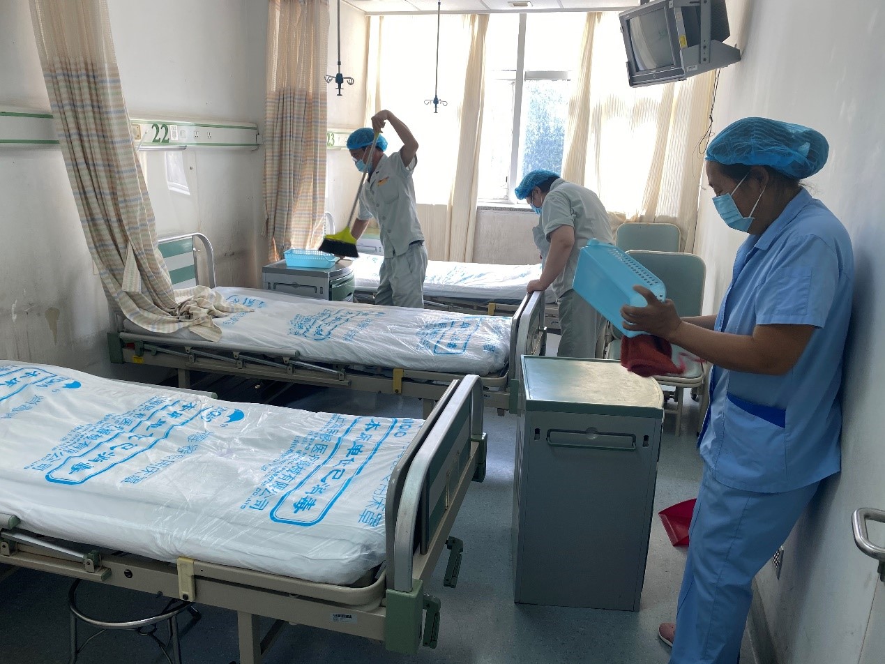随后,邵帅护士长带领科室护理人员及物业人员共同对病区进行清整,核查抢救仪器,排查消防安全隐患,确保节日期间病区安全。