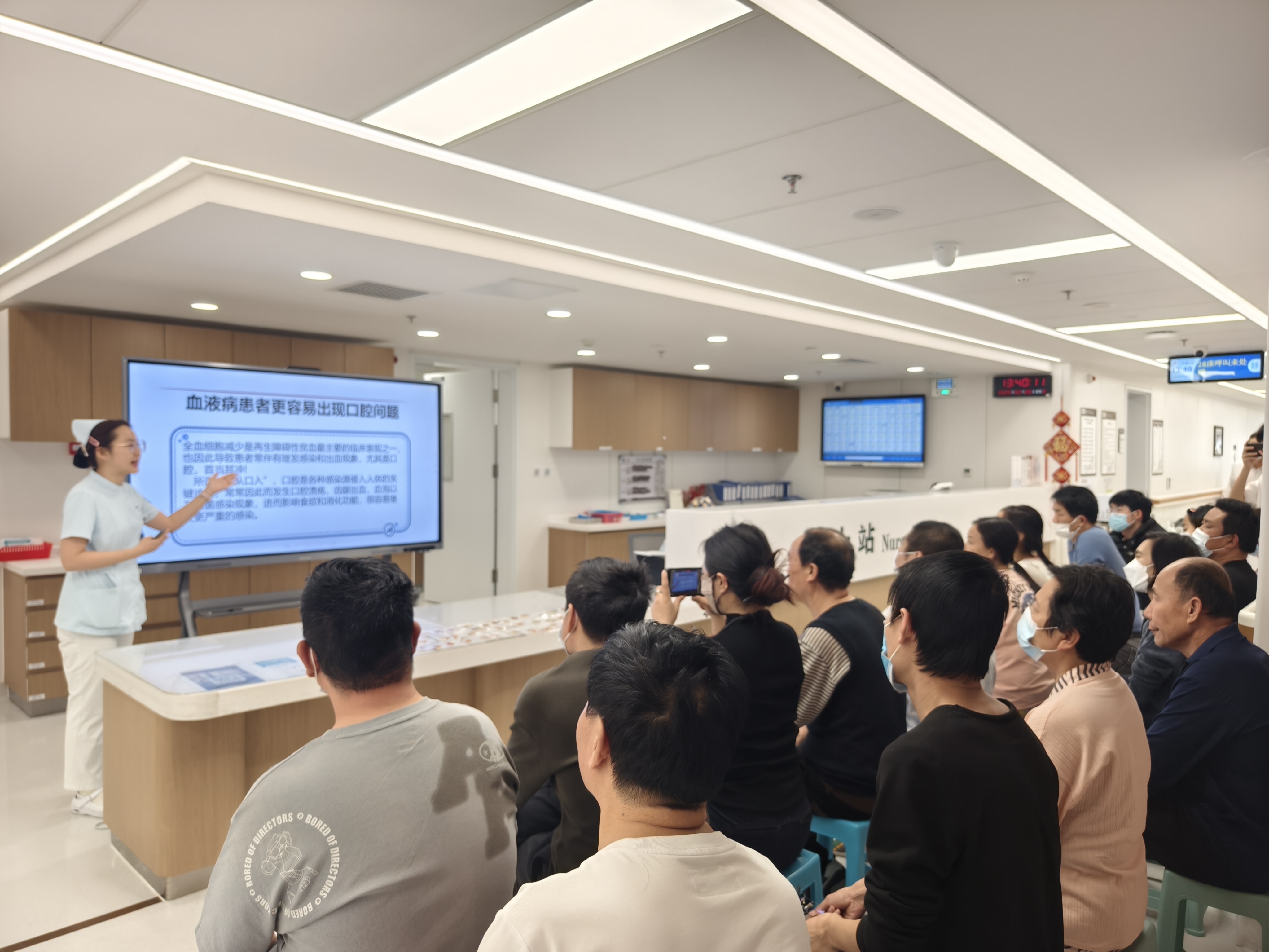 再生障碍性贫血(再障)是由于遗传、免疫、药物、妊娠或理化毒物等因素导致骨髓造血减低,进而引起红细胞、血小板及白细胞减低,出现贫血、出血以及反复感染等症状。此次活动聚焦正确的漱口、坐浴方法,旨在为患者提供科学的护理指导。活动中,护士马坤从牙刷的选择、漱口时机、漱口原则以及注意事项等方面,详细介绍了正确漱口的重要性,并提醒患者在日常生活中应关注的细节。护士刘芳宁则通过现场实物演示,讲解了坐浴过程中需要注意的水温、时间和方法,帮助患者掌握正确的护理技巧。
