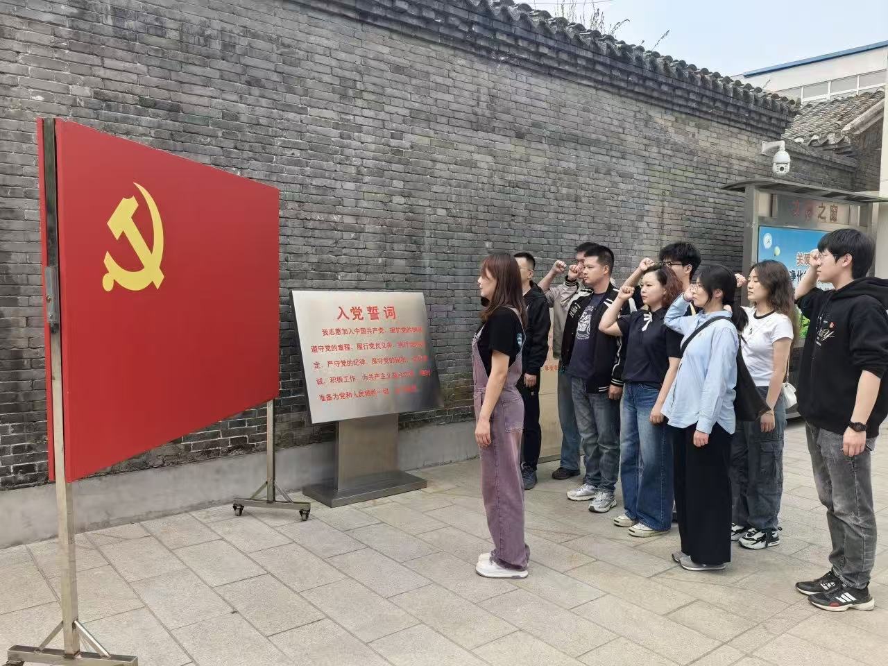 在纪念馆庭院内,全体党员面向党旗庄严宣誓,共青团员重温入团誓词。铿锵誓言回荡在青砖小院中,与百年前青年们“自觉自决”的呐喊遥相呼应。