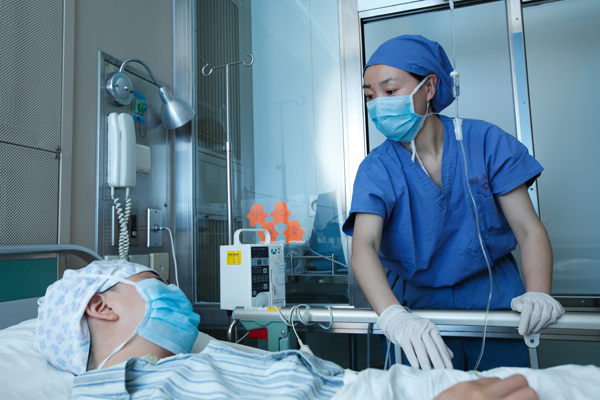 1个月前,我科的一位异基因造血干细胞移植的患者,移植后发生了两种严重的并发症——移植物抗宿主病和出血性膀胱炎,严重时尿血便血同时存在,腹泻次数最多时达到20多次。患者生活完全不能自理,一切都需要医护人员的帮助。一天我在给该患者输液时,发现他情绪异常低落,隐约感到病人有心事。该患者是某企业高管,文化层次较高,而且我还知道他信佛,便以学习佛教文化知识为切入点,打开了他的话匣子。经过2个小时的长谈,疑惑终于解开了。原来那天是他爱妻的忌日,死因是一年前的车祸。病人终于把压抑已久的悲痛全部向我倾诉。他说本来想找东西自杀,一了百了。我的耐心劝解终于令他放弃了自杀的念头,毕竟他还有一个年幼的女儿放不下。其实家属也快到了崩溃的边缘了。我们移植中心3病区的护理姐妹和护士长一起劝导家属,并和家属一起开导患者。最终患者决定积极配合治疗和护理。