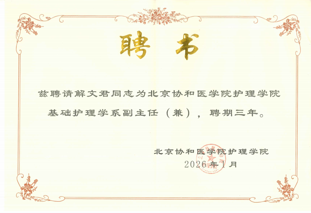 所院护理学科人才队伍再获新突破:解文君主任获聘北京协和医学院护理学院基础护理...