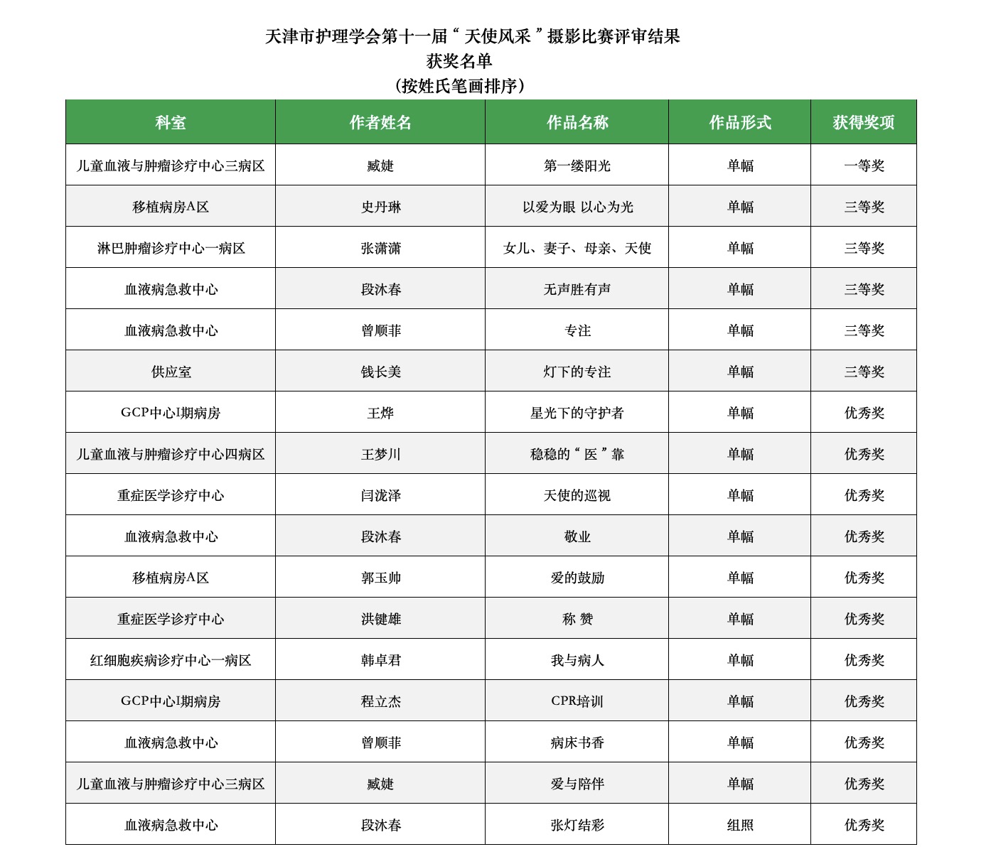近日,在天津市护理学会举办的第十一届“天使风采”摄影大赛中,所院17幅作品分别荣获一、三等奖及优秀奖。