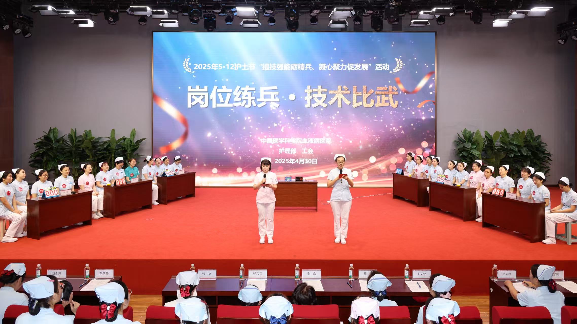 4月30日,护理部联合工会开展2025年“岗位练兵·技术比武”活动,护理部主任解文君、工会副主席金鑫出席,36名护理规范员和临床带教老师共同参加。