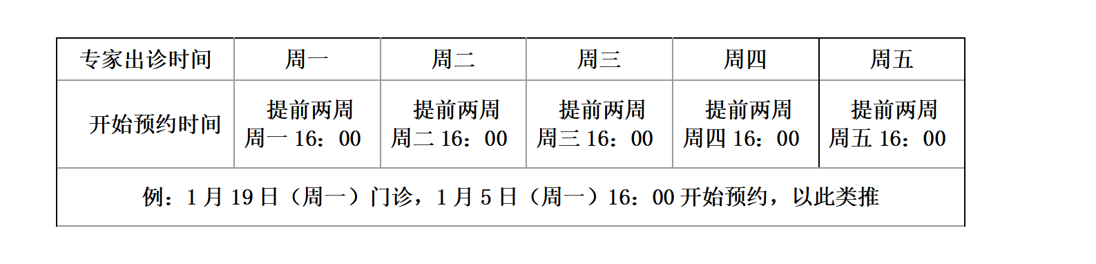 3 .提前两周16:00开始预约,截止到就诊日前一天23:00。号源有限,约满即止,具体时间点如下表:
