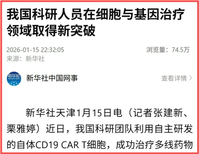 新华社:我国科研人员在细胞与基因...