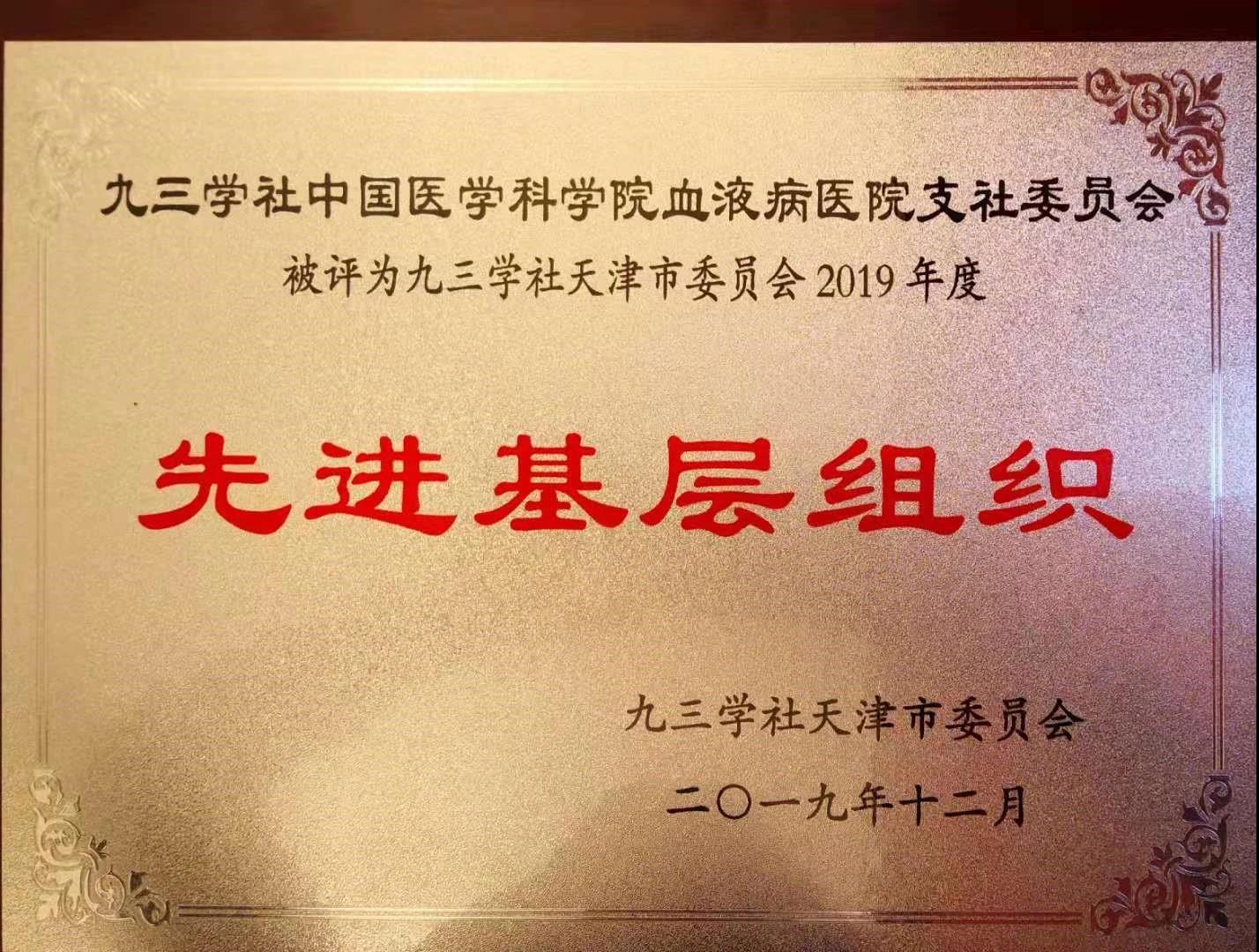会上,九三学社血液病医院支社委员会被评为先进基层组织,吴立华被评为优秀社员。支社主委王迎代表血液病医院支社上台领奖。九三学社天津市委员会还对2018-2019年期间在参政议政方面履职取得突出成绩、做出突出贡献的先进个人进行表彰。院所方健、李军、王迎、江波、艾晓非等五名社员获得参政议政先进个人三等奖。