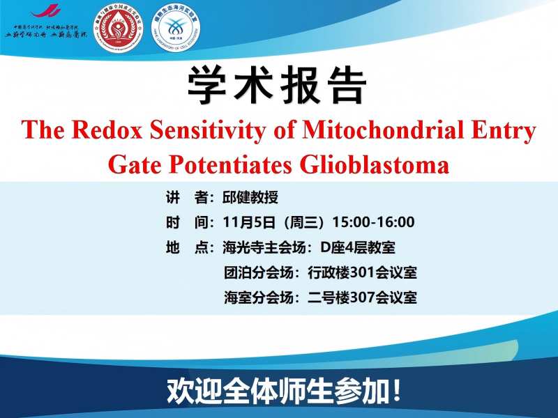 2025年11月5日学术报告:The Redox Sensitivity of Mitochondrial Entry Gate Potentiates Glioblastoma