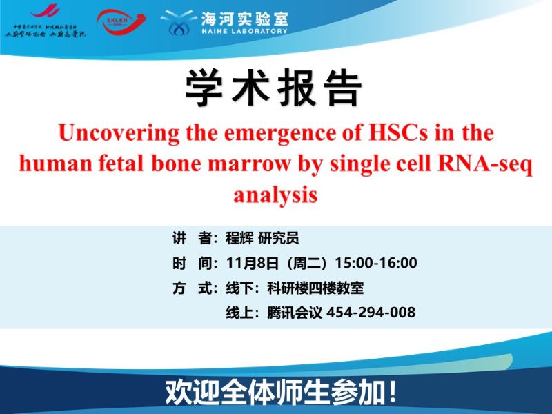 2022年11月8日学术报告:Uncovering the emergence of HSCs in the human fetal bone marrow by single cell RNA-seq analysis