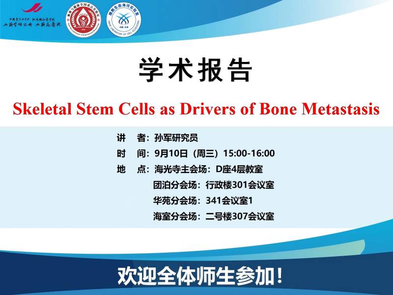 2025年9月10日学术报告:Skeletal Stem Cells as Drivers of Bone Metastasis